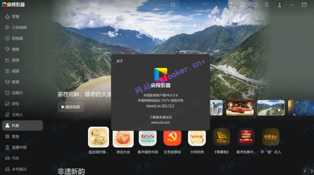 在软件说明里面可以看到央视影音竟然使用QT框架开发的
