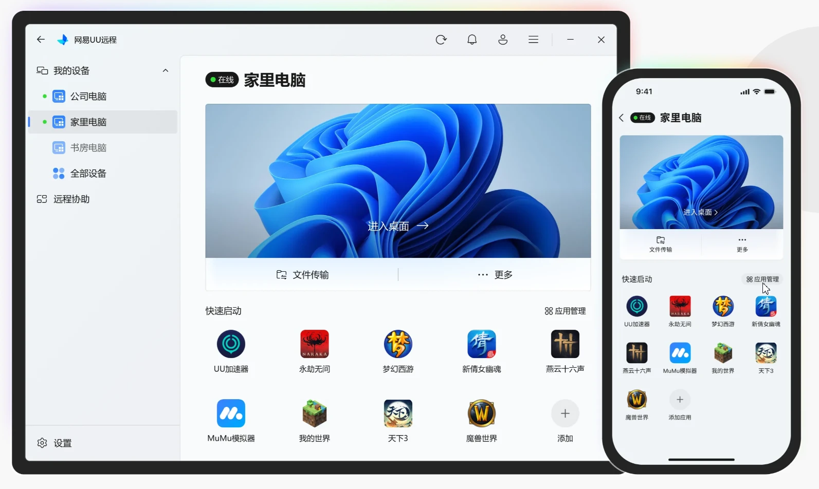 网易UU远程4.0是网易公司推出的一款远程控制软件,主要用于实现不同设备之间的远程操作和连接。软件支持操作系统:Windows、macOS、iOS、Android、TV