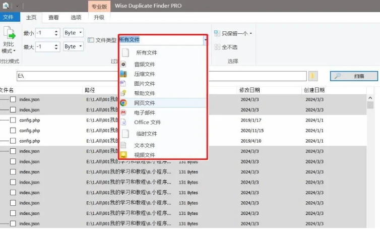 全面的文件扫描功能 :Wise Duplicate Finder 可以扫描计算机上的各种文件,无论是常见的文本文件、图片文件、音频文件、视频文件,还是其他类型的文件,都能快速准确地找出其中的重复文件