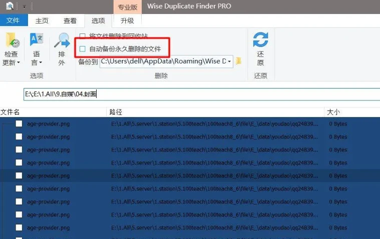 安全的备份还原功能:Wise Duplicate Finder 在文件管理方面考虑得非常周到,具备备份和恢复功能。在删除文件时,它会提醒你进行备份,避免误删重要文件