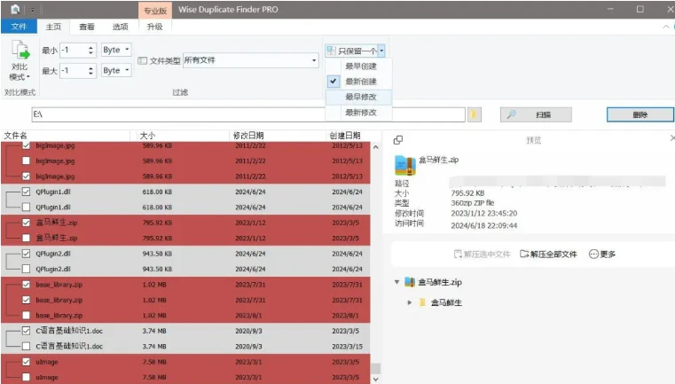智能的文件选择机制 :在扫描出重复文件后,你可以根据文件的质量、日期等参数智能选择重复文件,选择要删除的重复文件