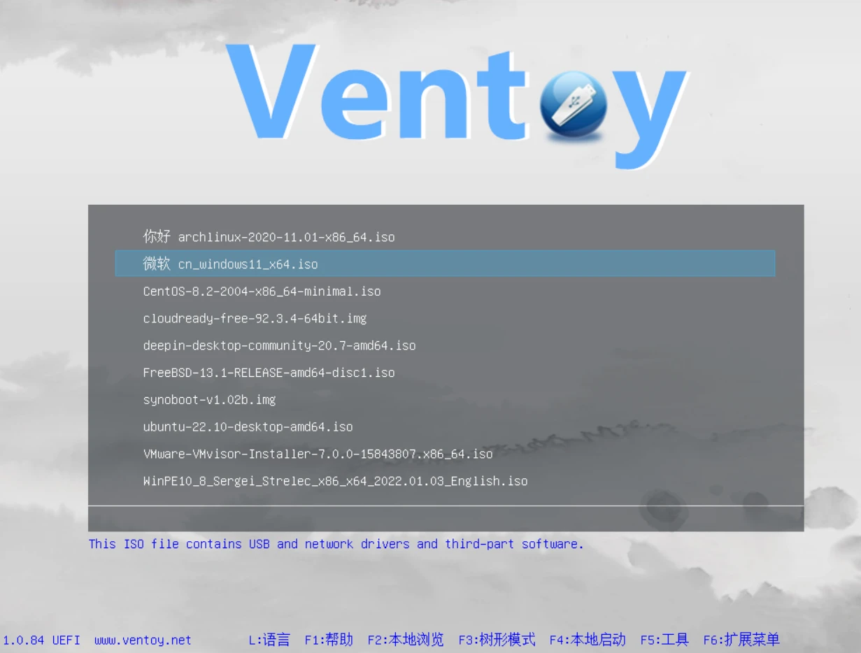 “Ventoy Compatible”概念:对于Ventoy兼容的ISO文件,它进行了优化,无需解压就能直接从U盘启动,大大提高了启动效率,节省启动时间。