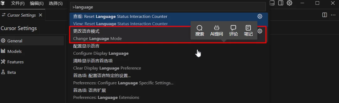 对于 VSCode 用户而言,迁移到 Cursor 几乎无需学习成本。它支持相同的快捷键操作、扩展生态系统(可通过 Marketplace 下载扩展)、语言配置(如 Python 解释器设置)、远程开发(SSH/容器/WSL 连接)以及高度可定制化的设置。如果你日常使用 PyCharm,也能快速适应 Cursor 的工程管理方式和交互逻辑。