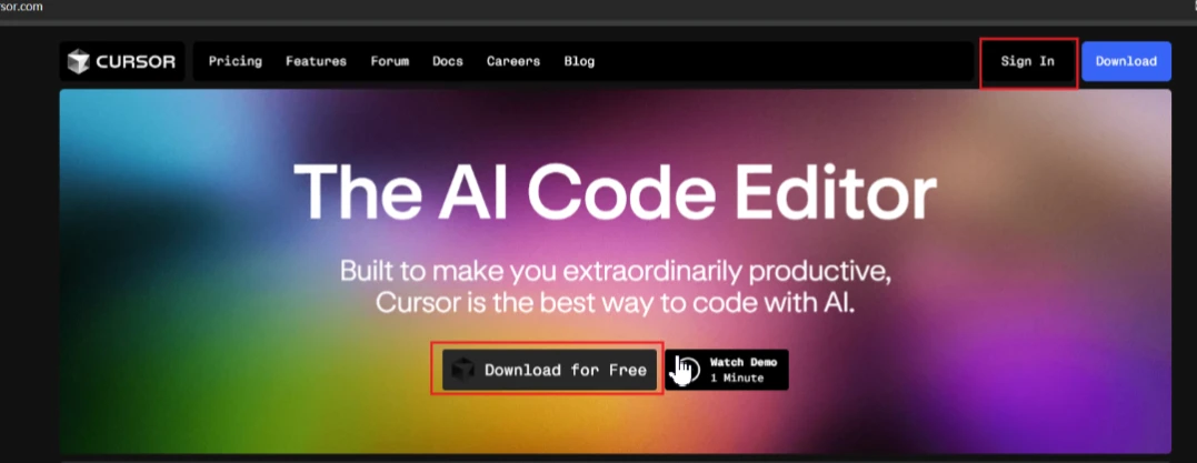 访问 Cursor 官网可以下载适用于 Windows、macOS 或 Linux 的安装包。首次启动需注册账号,目前支持邮箱注册或第三方身份验证(如 GitHub 账号)。