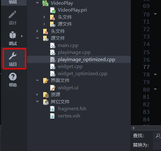 QtCreator 左侧项目面板中,点击 “项目”(Projects)图标。