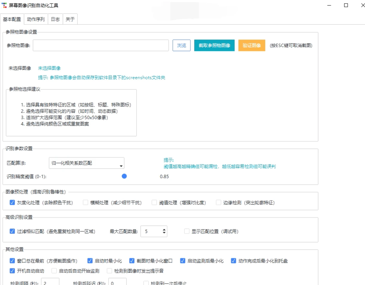 多窗口与多屏幕适配:无论目标图像在电脑的主屏幕、外接显示器,还是在最小化后重新打开的窗口中,都能通过设置“窗口优先级”或“屏幕范围”,精准定位目标,不会因窗口切换而失效。