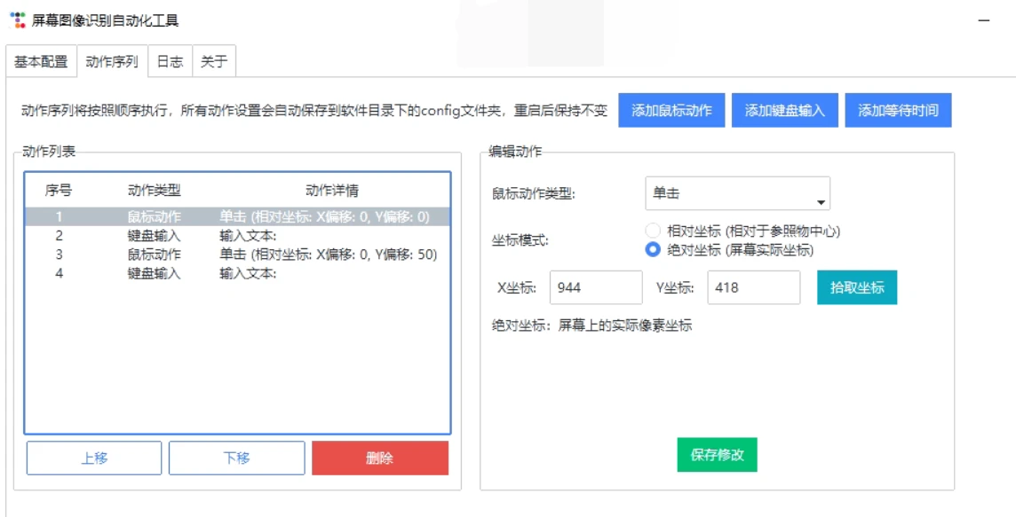-支持设置多步骤动作序列(鼠标操作、键盘输入文字、指定按键等)