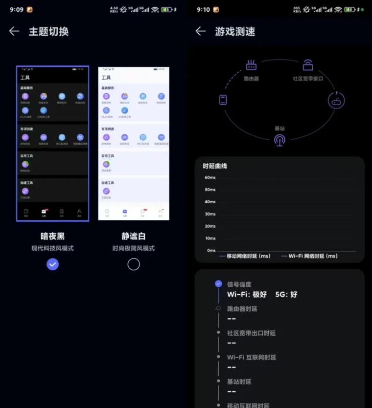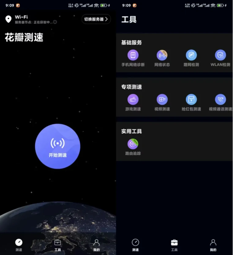 这款应用实测数据与手机状态栏网速匹配度高,集成蹭网检测、游戏专项测速等实用功能。它的服务器丰富且能自动选择节点,测速结果稳定,绝大多数情况下无需手动更换测速服务器。