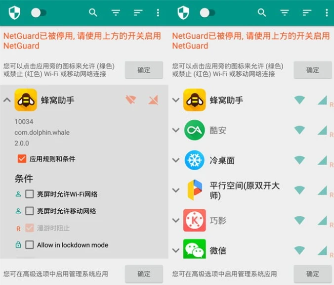 Android NetGuard(网络护卫)是一款专为Android系统设计的开源网络权限管理软件,核心作用是让你手动控制手机里每款应用的Wi-Fi和移动数据访问权限,避免不必要的流量消耗和隐私数据偷传。