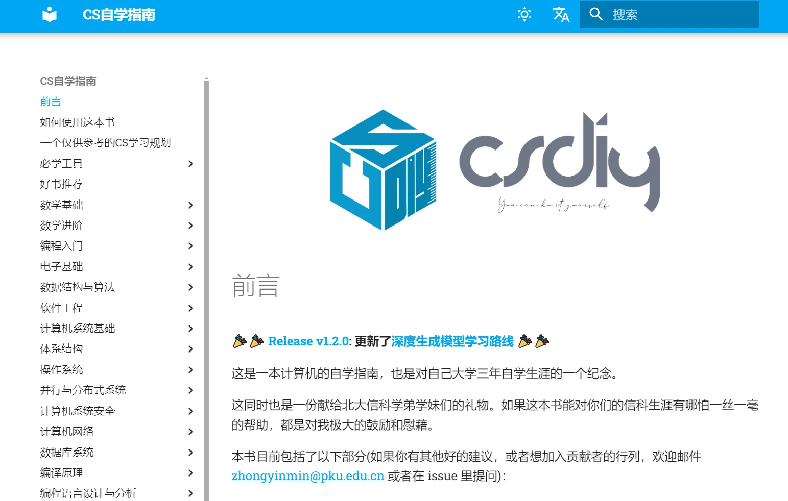 一个发布在GitHub平台上的计算机科学(CS)自学资源库,由开发者整理并分享,涵盖了计算机领域多个方向的学习资料、课程推荐和实践指南,适合想要系统自学计算机知识的人群,比如刚接触编程的大学生、想转行进入IT行业的职场人,或是需要补充某块计算机专业知识的从业者,都能通过这个资源库找到对应学习路径。
