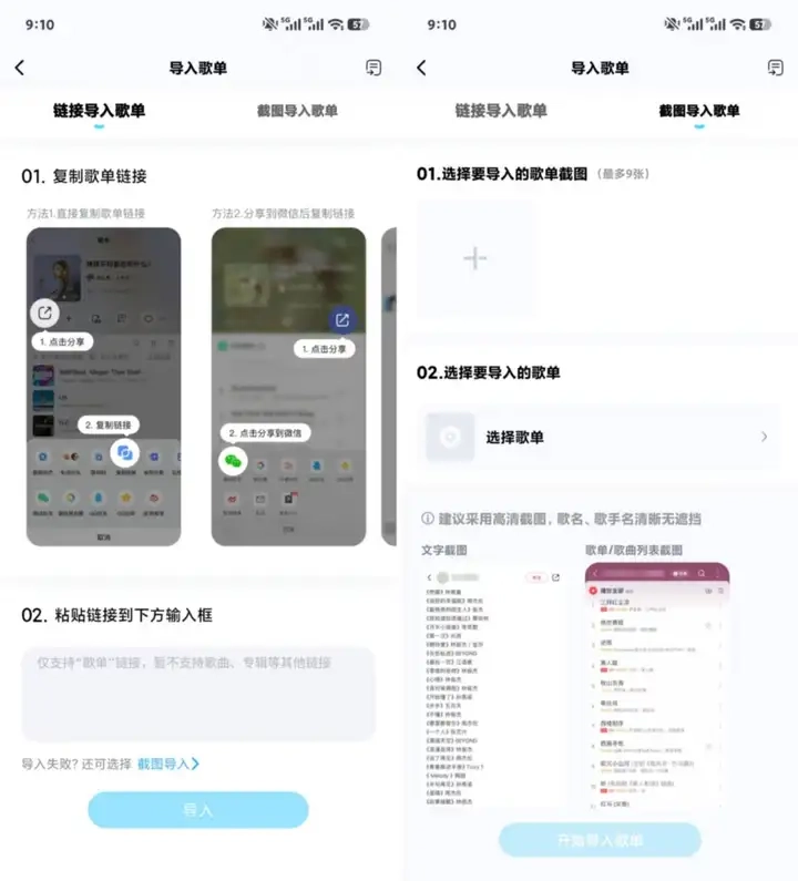 个性化歌单:你可以在这个平台上创建多个歌单,而且还可以导入多个平台的歌单,包括网易云和QQ音乐等。而且软件还支持通过截图的方式导入歌单,非常的方便