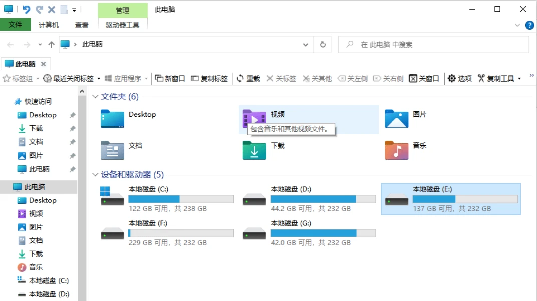 标签页拖拽操作:可将一个标签页从当前窗口拖拽出来,生成新的资源管理器窗口;也能将外部文件夹(如桌面文件夹)拖拽到现有标签栏,直接生成新标签页打开该文件夹,无需手动通过“打开文件夹”步骤操作。