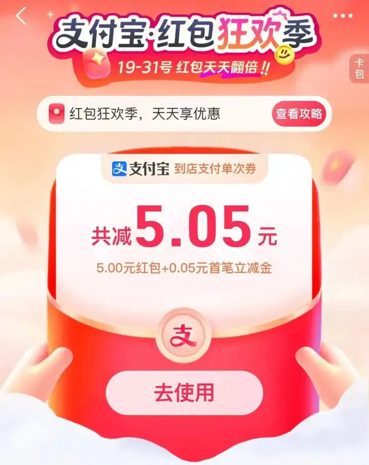 复制口令846095473之后,打开支付宝直接搜索,之后点击立即领红包即可!