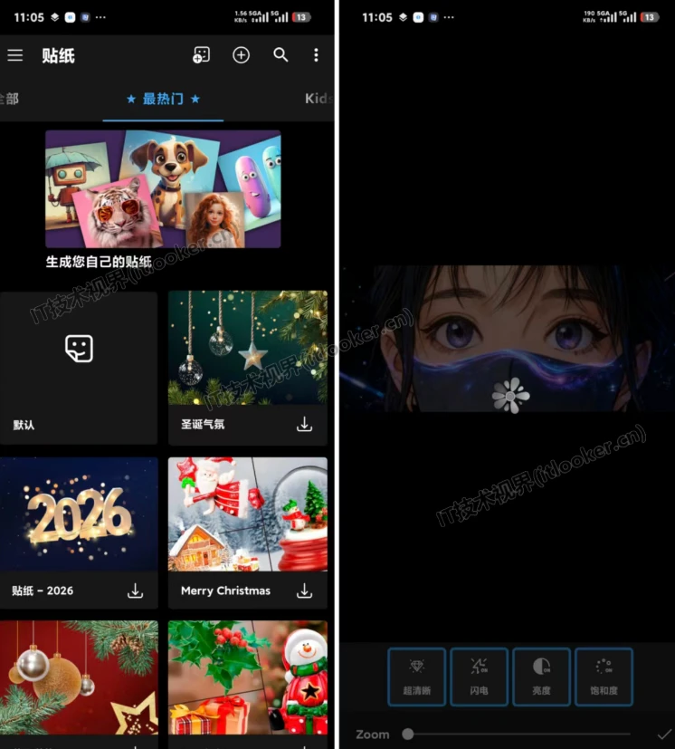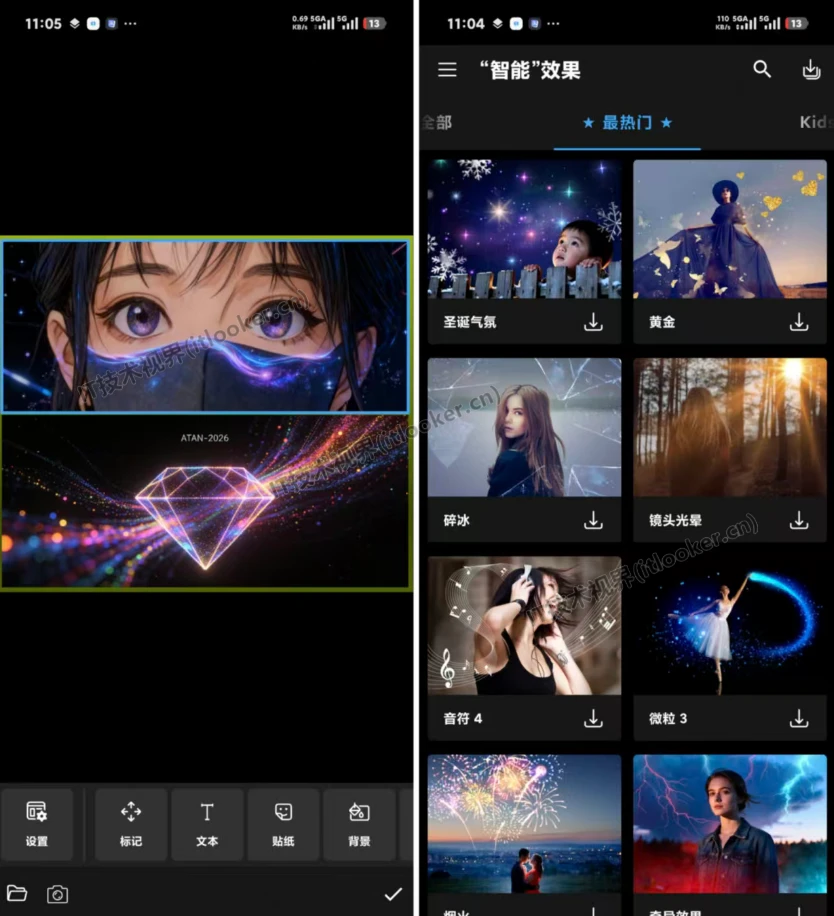 超过200个滤镜:涵盖复古、清新、胶片、暗黑等多种风格,可直接套用快速改变图片整体氛围,也能手动调节滤镜强度,适配不同场景的图片调性。