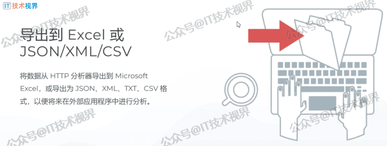 导出数据:你可以将HTTP分析器的数据导出到Microsoft Excel,或者「JSON,XML,TXT,CSV」格式,以便在外部应用程序中进行进一步的分析。