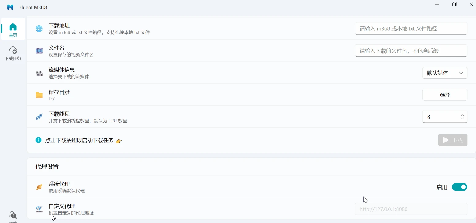 现代化界面设计:Fluent-M3U8 基于 Fluent Design 设计语言,界面简洁优雅、直观易用。无论是新手还是有经验的用户,都能快速上手,轻松完成下载任务。
