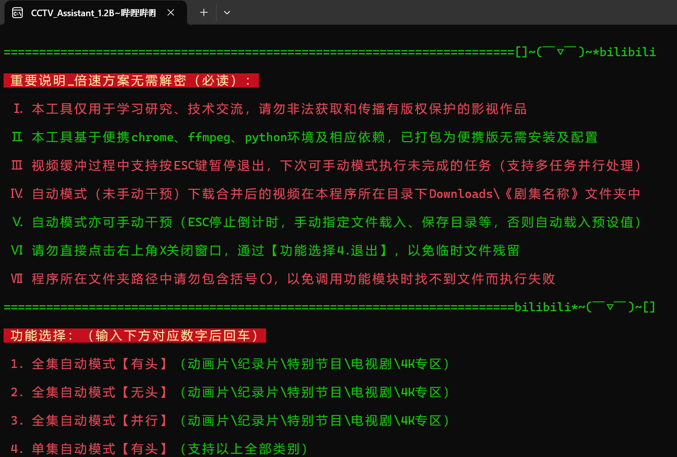 CCTV_Assistant_1.2B是央视网视频下载辅助工具,可识别央视全平台视频,提供多清晰度选择、批量下载、格式自动适配,助力离线观看央视纪录片、新闻、综艺等内容。